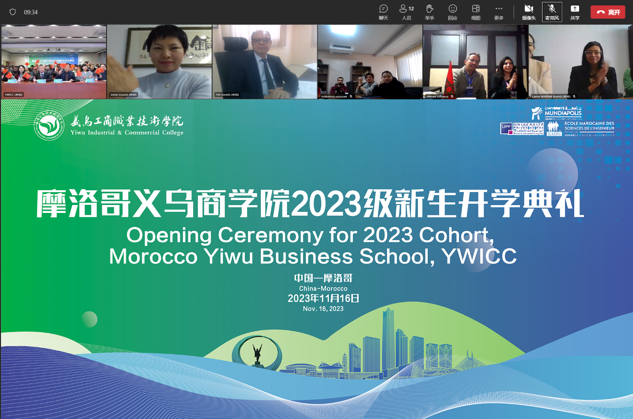 Morocco Yiwu Business School is the first overseas branch of YWICC, jointly established with Mundiapolis University in Morocco. Established in 1996, Mundiapolis Univer sity is the first private university located in the downtown of Casablanca, Morocco. The university's president serves as the chairman of Sino- North Africa International Education Innovation Association.