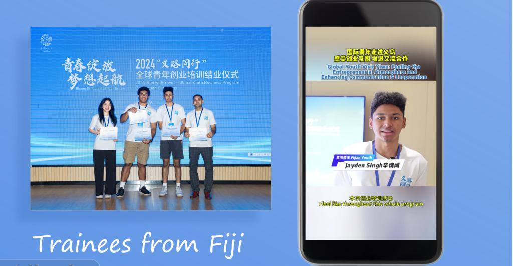 The person in charge of the School of International Education reported on the school’s history, scale of talent cultivation, and its unique educational path of “establishing the school, honoring the city-school collaboration”. Four Fijian youths were invited to participate in the 2024 “Run with Yiwu—Global Youth Entrepreneurship Training,” engaging in dual-creation practice at our school’s International Entrepreneurship Park and off-campus innovation and entrepreneurship bases. The Fijian participants shared their training experiences and gains via video.