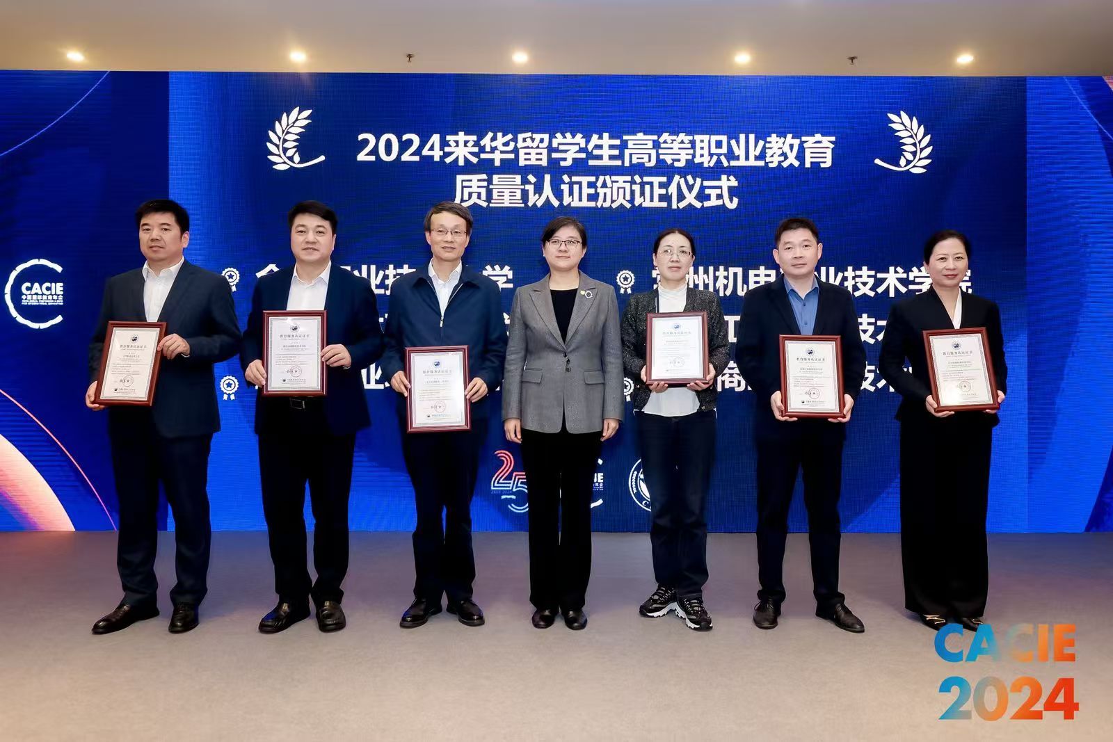 The awarding ceremony for the Quality Certification of Higher Vocational Education for International Students in China was held during the 25th China International Education Annual Conference. YWICC achieved excellent results in the initial assessment, with a six-year certification validity period. Li Changzu, the Party Secretary of YWICC, accepted the on-site award on behalf of YWICC. An Yan, the Deputy Secretary-general of the China Education Association for International Exchange, and more than 200 representatives from domestic and foreign colleges and international education institutions attended the conference and the awarding ceremony.