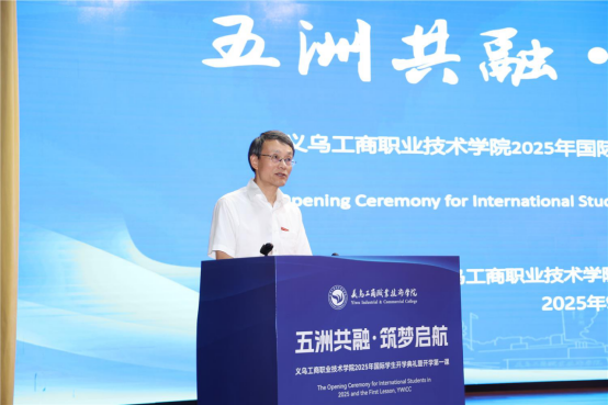 In his keynote address, Professor Li Changzu extended warm welcome to all international students on behalf of YWICC. He encouraged international students to grow together based on both the campus learning and the commercial resources of Yiwu city, and strive to become international ambassadors who "understand Chines language and culture, possess strong skills and are capable of starting businesses". He put forward three hopes for the international students: be a dream chaser who continuously improve Chinese language and vocational skills; be a trailblazer who integrate the innovative genes of Yiwu and pursue entrepreneurship and innovation; be a pioneer who promote exchanges and mutual learning between Chinese and international civilizations.