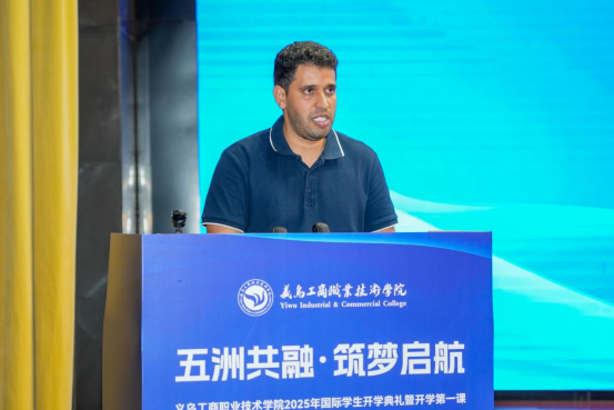 Ennamane Otmane from Morocco, as a representative of outstanding alumni, shared his personal journey of coming from afar to study Chinese at Yiwu Industrial & Commercial College, overcoming challenges and eventually settling down in Yiwu to engage in international trade.
